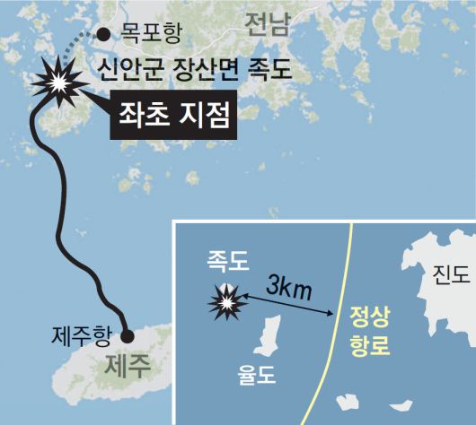 여객선 뱃머리에선 충격으로 인한 것으로 보이는 구멍이 발견됐다. 해경은 침수 등 추가 피해를 막기 위해 인원을 투입해 여객선 내 깨진 구멍 부위를 확인하고 있다. 해경과 선사에 따르면 여객선은 스스로 암초에서 벗어날 수는 없는 상태다. 해경은 예인선을 동원해 배를 인양할 계획이다. 장산면사무소 직원과 어민들은 승객 30명이 탈 수 있는 큰 어선 1척을 운항해 사고 해역으로 달려갔다. 어민들은 “대형 사고가 난 줄 알고 가슴을 쓸어내렸다”고 말했다.