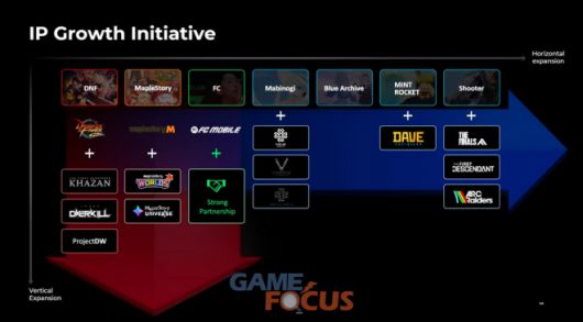 당시 행사에서 넥슨 일본법인 이정헌 대표는 2027년까지 매출 7500억 엔(한화 약 7조 840억 원), 영업이익 2500억 엔(한화 약 2조 3610억 원) 달성을 목표로 하고 있다며, 자사가 보유한 블록버스터 IP의 성장(종적 확장)과 차세대 블록버스터 IP 육성(횡적 확장) 전략을 병행하며 거대 IP 생태계를 보유한 회사가 될 것이라고 포부를 밝힌 바 있다.