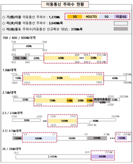 지난 6월 과기정통부는 3G·LTE 주파수 370메가헤르츠(㎒)폭 전부를 재할당하겠다고 밝혔다.