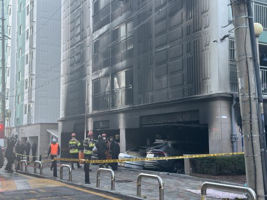 불은 필로티 구조인 건물 1층 주차장에서 시작된 것으로 추정된다. 주차돼 있던 차량 18대는 모두 전소됐다.