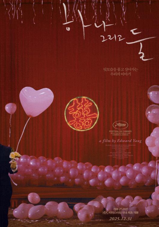 [스타데일리뉴스=조수현기자] 12월 31일 개봉 25주년을 맞아 4K 리마스터링으로 국내 최초 개봉을 확정한 영화 <하나 그리고 둘>이 씨네큐브 25주년 특별전과 서울아트하우스영화제에서 전석 매진 행렬을 기록했다. <하나 그리고 둘>은 <고령가 소년 살인사건>, <타이페이 스토리>, <공포분자> 등 전작을 통해 꾸준히 사랑받아온 에드워드 양 감독의 세계관을 집대성한 작품이다. '타이베이'라는 도시 안에 살아가는 가족의 일상을 통해, 우리가 스쳐 지나가는 삶의 진실과 그 이면을 포착한 작품으로 개봉 25년이 지난 지금까지도 수많은 영화인과 관객에게 깊은 울림을 전하고 있다.