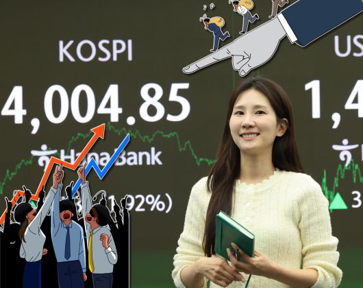지난 20일 오후 서울 중구 하나은행 본점 딜링룸 현황판에 코스피 지수가 표시돼 있다. 전날 코스피는 엔비디아의 호실적에 힘입어 4000선을 재탈환했다. [연합, 게티이미지뱅크, 신동윤 기자 정리] |
