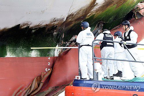좌초 선박 살펴보는 감식반 |