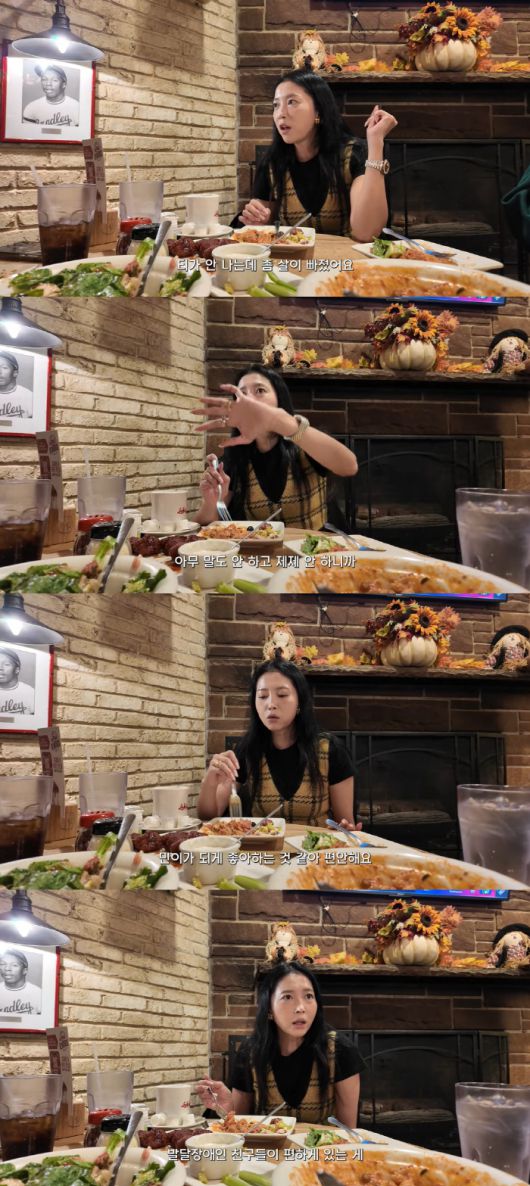 이어 "미국인들은 민이 같은 아이가 돌아다니는데 익숙해져 있다"라는 지인의 말에, "미국 사람들은 민이가 돌아다녀도 아무 말도 안 하고 제재를 안 한다. 민이가 되게 좋아하는 것 같아 편안하다"라며 격하게 공감했다. 또 오윤아는 "발달장애인 친구들이 되게 밝더라. 하지 말라고 하는 게 없다. 발달장애인 친구들이 편하게 있더라"라며 놀랐다.
