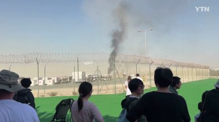 당시 사고기는 통제력을 잃고 알막툼 국제공항 지면으로 추락한 뒤 폭발해 현장에서 불길과 연기가 치솟았습니다.