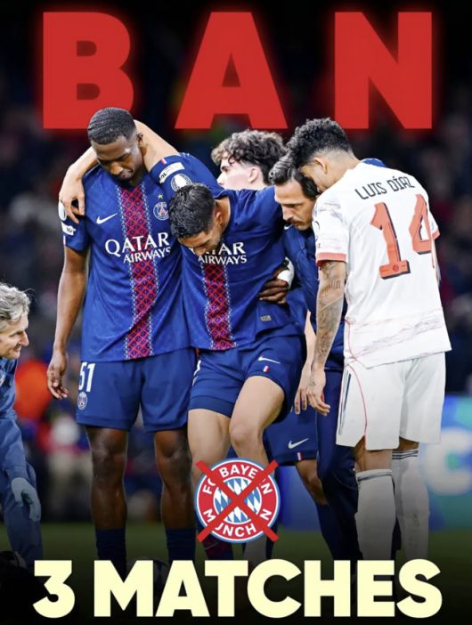 하키미는 이 부상으로 최대 8주간 이탈이 확정됐다. 태클은 물론 이후 행동까지 논란이 된 디아즈는 자신의 SNS를 통해 하키미에게 사과를 전했다. 다만 UEFA 사무국은 디아즈의 플레이를 심각하다고 판단, 3경기 징계를 내렸다.