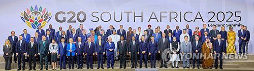 앞줄 오른쪽부터 파블로 키르노 아르헨티나 외교부 장관, 파이살 빈 파르한 알 사우드 사우디아라비아 외무장관, 키어 스타머 영국 총리, 이재명 대통령, 나렌드라 모디 인도 총리, 프리드리히 메르츠 독일 총리, 에마뉘엘 마크롱 프랑스 대통령, 마크 카니 캐나다 총리, 주앙 로렌수 아프리카연합(AU) 의장, 올해 의장인 시릴 라마포사 남아프리카공화국 대통령, 루이스 이나시우 룰라 다시우바 브라질 대통령, 앤서니 앨버니지 호주 총리, 리창 중국 총리, 안토니우 코스타 유럽연합(EU) 정상회의 상임의장, 우르줄라 폰데어라이엔 유럽연합(EU) 집행위원장, 기브란 라카부밍 라카 인도네시아 부통령, 다카이치 사나에 일본 총리, 레제프 타이이프 에르도안 튀르키예 대통령, 에드가르 아브람 아마도르 사모라 멕시코 재무부 장관, 막심 오레쉬킨 러시아 대통령실 부비서실장, 조르지아 멜로니 이탈리아 총리. 2025.11.22 [공동취재 제공. 재판매 및 DB 금지]