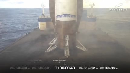 발사장에서 600km 떨어진 해상 플랫폼에 정확하게 수직 착륙했습니다.