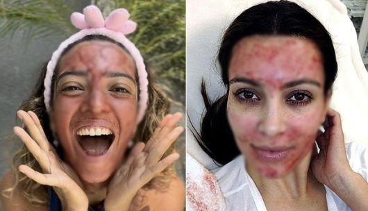 얼굴에 생리혈을 바른 인플루언서 사라 솔(왼쪽)과 ‘뱀파이어 얼굴(PRP 주사)’ 시술을 한 킴 카다시안. SNS 캡처 |