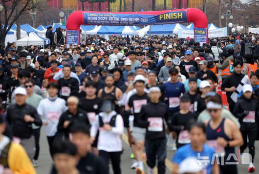 [서울=뉴시스] 홍효식 기자 = 23일 오전 서울 마포구 평화의공원 평화광장에서 열린 제10회 김대중 평화 마라톤 대회에서 참가자들이 힘차게 출발하고 있다. 2025.11.23. yesphoto@newsis.com |