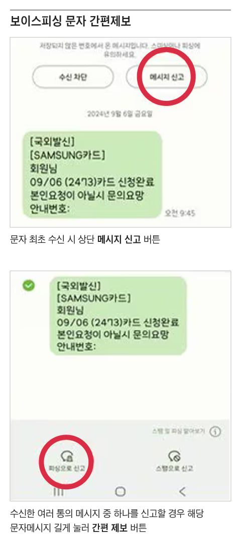 경찰청은 지난해 12월부터 삼성전자와 협력해 삼성 스마트폰에 ‘간편제보’ 기능을 탑재했다. 이용자가 피싱 의심 문자를 길게 누르거나 통화 내역을 선택하면 ‘피싱으로 신고’ 버튼이 나오고, 이를 통해 별도 절차 없이 신고할 수 있다.