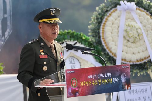 추모하는 주일석 해병대사령관 (대전=연합뉴스) 이주형 기자 = 23일 대전 유성구 국립대전현충원에서 거행된 제 15회 연평도 포격전 전투 영웅 추모 및 전승 기념식에서 주일석 해병대사령관이 기념사를 통해 전투 영웅들을 추모하고 있다. 2025.11.23 coolee@yna.co.kr (끝) <저작권자(c) 연합뉴스, 무단 전재-재배포, AI 학습 및 활용 금지> |
