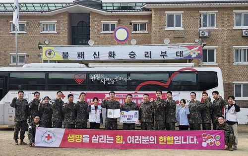 부대는 국민 생명을 지키는 군인으로서의 사명을 되새기고 따뜻한 기부 문화를 확산하고자 이날 행사를 열고 장병들이 자발적으로 모은 헌혈증 100장을 강원혈액원 관계자에게 전달했다.