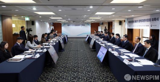 [서울=뉴스핌] = 윤호중 행정안전부 장관이 24일 서울 중구 한국프레스센터에서 열린 제8기 정책자문위원회 위촉식 및 첫 회의에 참석해 인사말을 하고 있다. [사진=행정안전부] 2025.11.24 photo@newspim.com