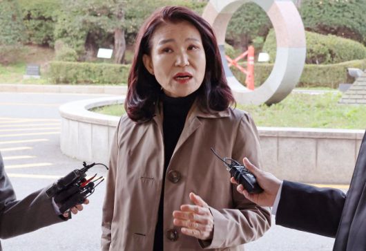 지난 5일 서울 양천구 서울남부지방검찰청에 이진숙 전 방송통신위원장이 영등포경찰서장 등에 대한 고발장을 제출하기 전 입장을 밝히고 있다. 뉴시스 |