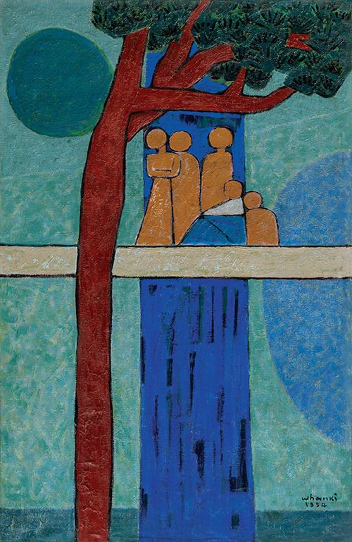 장욱진의 '무제'(1억1000만~2억5000만원)는 초가집과 아이, 나무, 가축, 초승달이 간결하게 배치된 작품이다. 절제된 선과 단순한 색면 조합이 장욱진 특유의 고요하고 명상적인 세계를 보여준다. 한국 인상주의의 선구자 오지호의 '정물'(700만~2500만원)도 나온다.