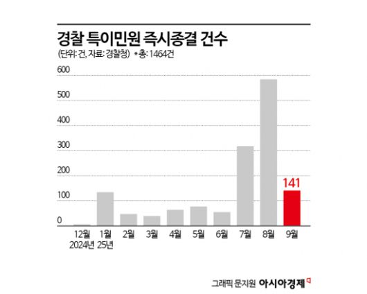 25일 윤건영 더불어민주당 의원실이 경찰청으로부터 받은 자료에 따르면, 경찰은 관련 통계 작성이 시작된 지난해 12월부터 올해 9월까지 총 1464건의 특이 민원을 즉시 종결 처리한 것으로 나타났다. 지난 8월이 584건으로 가장 많았는데 이는 하루 평균 20건에 달한다.