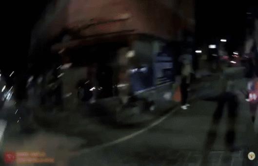 영상 초반 경찰은 "도망간다, 봐라", "나온나 나온나(나와라 나와)"라고 외치며 누군가를 쫓고 있다.