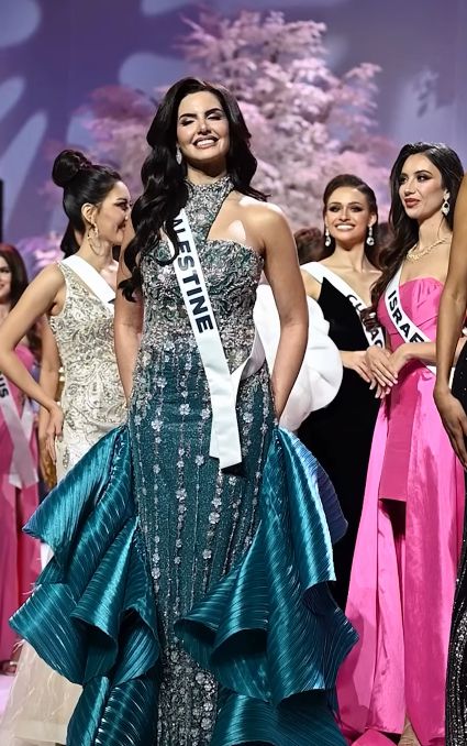 이달 초 태국 방콕에서 열린 미스 유니버스 2025 대회에서 아유브는 팔레스타인 대표로는 처음 무대에 올랐다. 당시 미스 이스라엘 멜라니 시라즈가 아유브를 곁눈질로 노려보는 듯한 영상이 소셜미디어에 확산되며 논란이 됐다. 시라즈는 17일 미국 폭스뉴스 인터뷰에서 "영상이 편집됐다"고 해명했으나, 이후 성폭행·살해 위협 메시지를 받았다고 밝혔다.