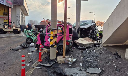 24일 제주 우도 천진항에서 60대 운전자가 몰던 승합차가 도항선 대합실 옆 도로표지판 기둥을 향해 돌진해 관광객 14명의 사상자가 발생했다. 제주시 우도 사고 현장. 독자 제공 |