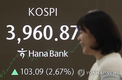 이날 코스피는 전장보다 103.09포인트(2.67%) 오른 3,960.87에 장을 마쳤다.