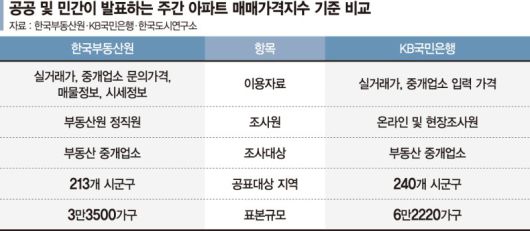 부동산원의 주간 주택가격동향조사는 전국 213개 시군구의 표본 아파트 3만3500채를 대상으로 한다. 조사원 337명이 이 표본에 대해 월요일과 화요일 이틀간 조사하고 분석 단계를 거쳐 목요일 공표하는 식이다.