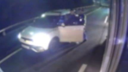 잠시 뒤, 버스 오른편에서 SUV 한 대가 나타나더니 차선을 가로질러 빠른 속도로 순찰차를 따돌립니다.