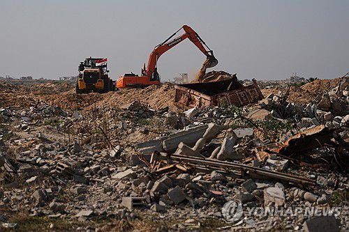 [누세이라트 AP=연합뉴스 자료사진 제공] 지난 21일(현지시간) 가자지구 북부에서 하마스 연계 무장조직 팔레스타인이슬라믹지하드(PIJ) 대원들이 이집트가 파견한 인력과 함께 이스라엘 인질 시신을 수색하고 있다. 2025.11.26 photo@yna.co.kr |