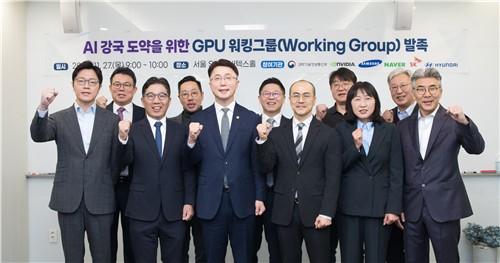 (서울=연합뉴스) 조성미 기자 = 과학기술정보통신부는 27일 서울 종로구 버텍스홀에서 삼성전자[005930], 현대자동차[005380], SKT[017670], 네이버와 엔비디아 그래픽처리장치(GPU) 26만장 공급과 관련한 실무협의단(워킹그룹)을 발족했다고 밝혔다.