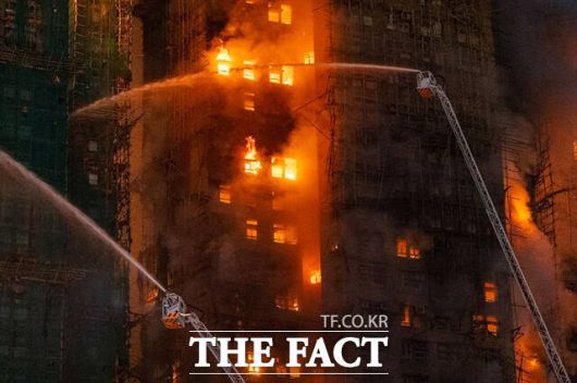 [더팩트ㅣ서예원 기자] 홍콩 북부 타이포 구역의 '웡 푹 코트' 아파트 단지에서 큰 화재가 발생해 소방관 1명을 포함한 최소 44명이 숨지고 279명이 실종됐다.