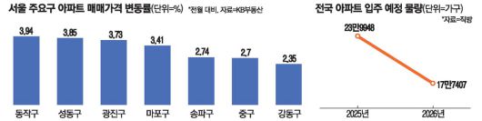 다섯째, 정책 기조의 변화다. 이재명 정부는 3차례의 주택시장 안정 대책에도 불구하고 시장이 여전히 불안한 현상을 보이자 추가 대책을 만지작거리고 있다. 만일 파격적인 공급 확대 정책이 나오고 영끌하는 패닉바잉 수요가 줄어들 경우 좀 더 기다리면 저가 양질의 주택이 공급될 거란 기대감이 충족되면서 갭투자를 비롯한 초과 수요는 진정될 확률이 높다는 진단이다. 하지만 추가 대출 규제나 세금 중과 조치가 나올 경우 노무현·문재인 정부 데자뷔처럼 매물절벽-전셋값 급등-매매가 급등은 피하기 어렵다는 지적이다.