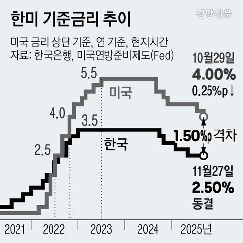 주원 현대경제연구원 경제연구실장은 “미국 연방준비제도(Fed·연준)가 한국과 비슷한 수준으로 기준금리를 내리는 걸 기다리는 데 시간이 꽤 걸리는 데다 실물경기도 우상향 될 것이라 기준금리를 더 내리긴 현실적으로 어려울 것”이라고 말했다. 박형중 우리은행 연구원은 “단기간 내 인하 여건이 조성되진 않을 것”이라고 말했다.
