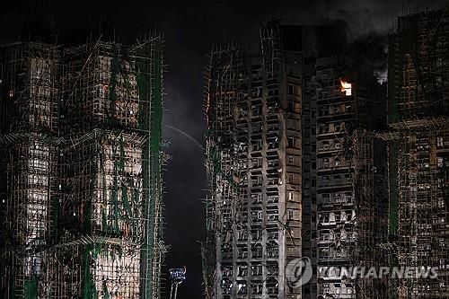 화재 연기가 피어오르는 홍콩 고층 아파트 단지 '웡 푹 코트' |