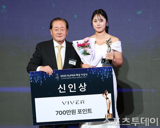 [스포츠투데이 권광일 기자] 프로골퍼 서교림이 28일 오후 서울 강남구 삼성동 그랜드 인터컨티넨탈 서울 파르나스에서 열린 2025 KLPGA 대상 시상식에 참석해 신인상을 수상하고 있다. 2025.11.28. [스포츠투데이 권광일 기자 sports@stoo.com]