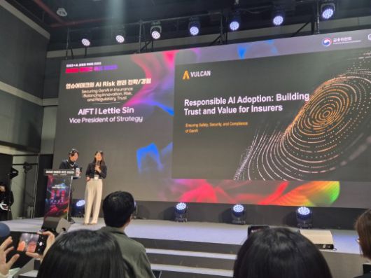 첫 번째 주제 발표로 레티 신(Lettie Sin) AIFT 전략 부대표는 ‘인슈어테크의 AI Risk 관리 전략’이라는 주제로 GenAI 확산과 보험산업의 새로운 위험을 소개하고, 그에 따른 기술적 및 조직적 준비 사항을 제시했다.