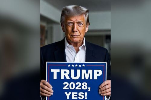 '트럼프 2028'이라고 적힌 피켓을 든 트럼프 이미지 |