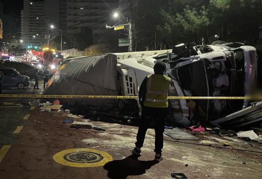 사고가 난 도로는 경사가 심해 2.5t 이상 차량의 통행이 금지된 곳이다. 경찰은 블랙박스와 인근 감시카메라 등을 토대로 차량이 속도를 줄이지 못해 사고를 냈는지, 브레이크는 제대로 작동했는지 등 정확한 사고 경위를 조사 중이다.