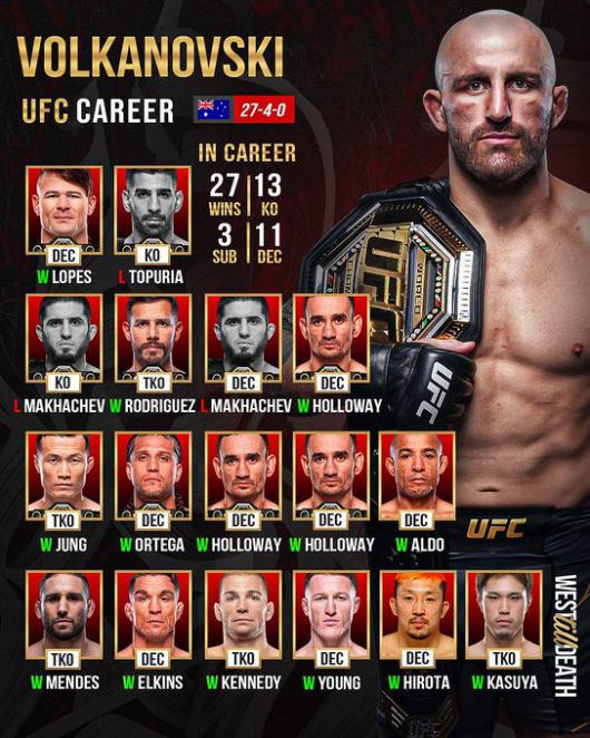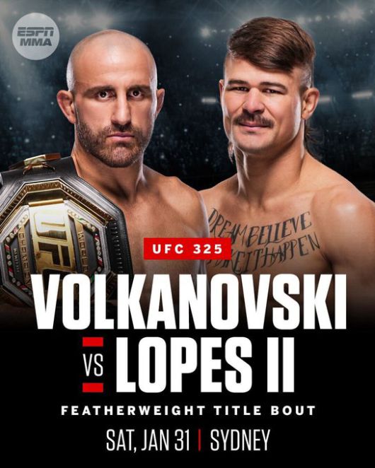 볼카노프스키는 내년 1월 31일 UFC 325에서 디에고 로페스와 페더급 타이틀을 두고 재대결을 펼칠 예정이다.