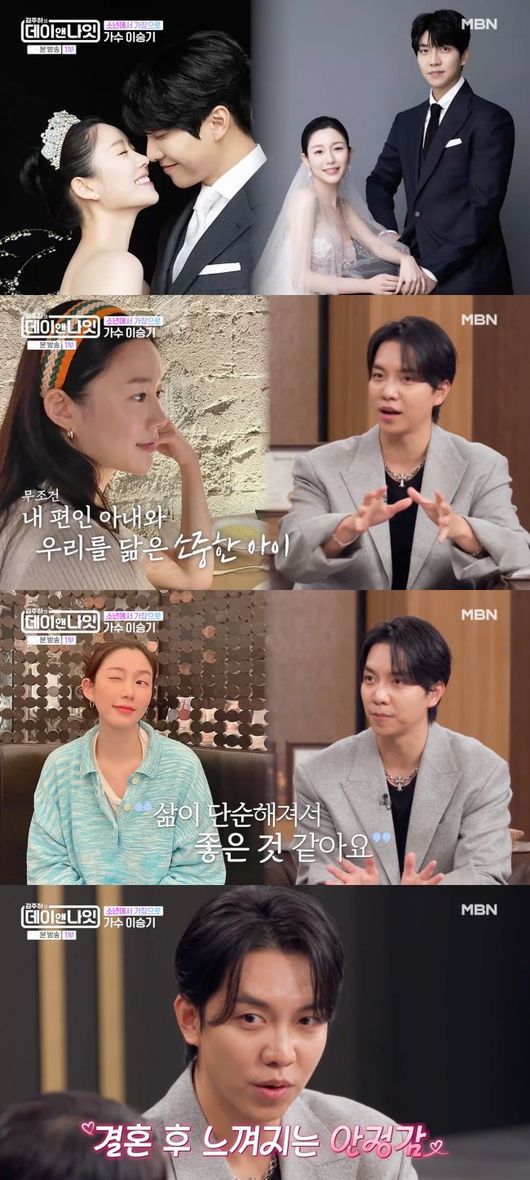 이승기는 “너무 20대 때부터 막 달리면서만 살아와서 데뷔한 지 21년이니까 충전도 하고 안정을 찾고 싶은 시기에 결혼을 하니까 안정감이 있는 것 같다”라고 덧붙였다.
