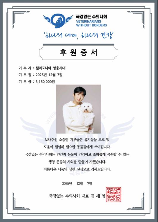 국경없는 수의사회 김재영 회장은 “해외 팬들이 임영웅의 이름으로 보내온 따뜻한 후원은 의료 지원과 생명 존중 교육 등 다양한 활동을 통해 의료 취약 동물의 안전망이 되고 동물과 사람 모두에게 희망이 될 것”이라며 감사를 표했다.