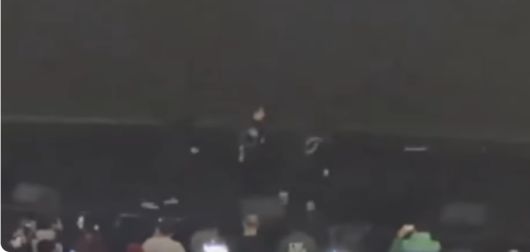 가수의 노래를 따라부르던 관객들이 갑작스런 암전 사고에 당황하던 찰나, 행사 관계자로 보이는 3명의 스텝이 오츠키 마키를 무대 밖으로 안내했다. 공연 도중 갑작스럽게 퇴장당한 것이다.