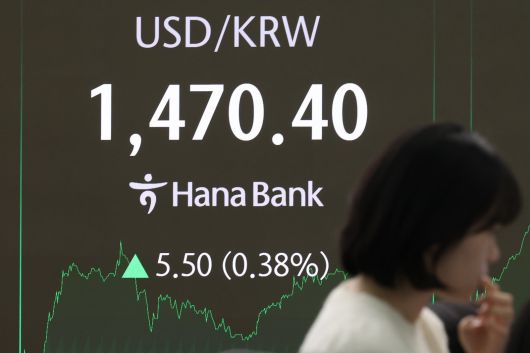 서울 외환시장에서 원·달러 환율이 전 거래일(1464.9원)보다 5.7원 오른 1470.6원에 주간거래를 마감한 28일 오후 서울 중구 하나은행 딜링룸 전광판에 지수가 표시돼 있다. 2025.11.28.뉴시스 |