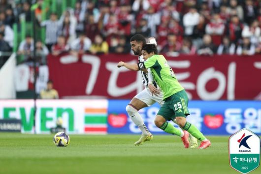 전북은 30일 오후 4시 30분 전주월드컵경기장에서 열린 '하나은행 K리그1 2025' 38라운드(최종 라운드)에서 FC 서울을 상대하고 있다. 후반전 현재 스코어는 1-1이다.