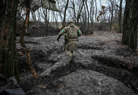 지난 20일(현지시간) 우크라이나 도네츠크 지역 포크롭스크 인근에서 러시아의 우크라이나 공격이 발생한 가운데 한 병사가 최전선에서 이동하고 있다. [로이터] |