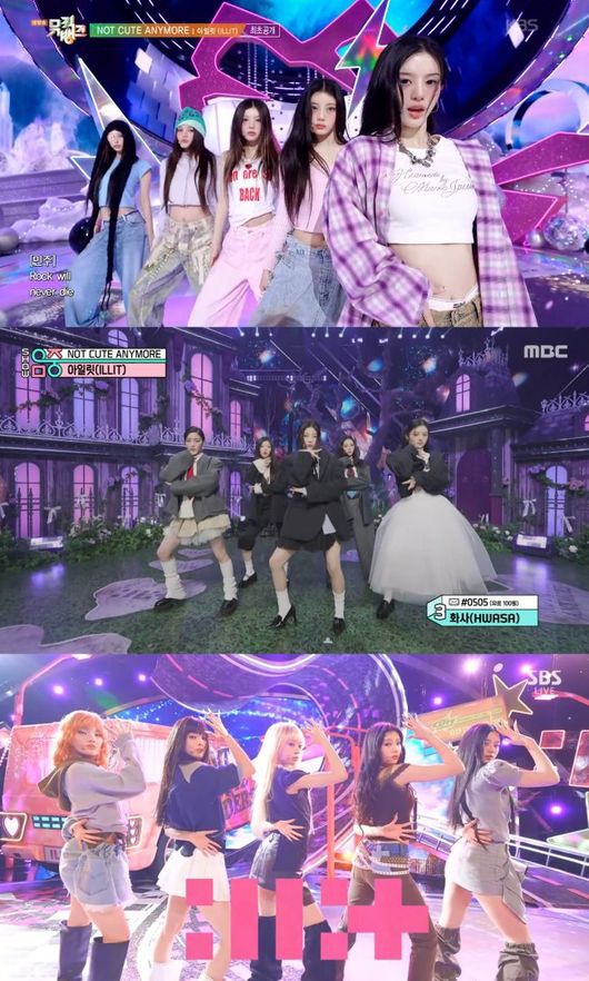 아일릿(윤아, 민주, 모카, 원희, 이로하)은 지난달 28일 KBS2 ‘뮤직뱅크’를 시작으로 29일 MBC ‘쇼! 음악중심’, 30일 SBS ‘인기가요’에서 싱글 1집 ‘NOT CUTE ANYMORE’와 동명의 타이틀곡 무대를 꾸몄다.