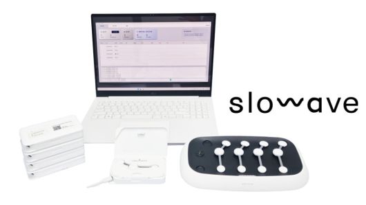 슬로웨이브 1.0은 자체 개발한 무선 뇌파 센서를 탑재한 검사 기기다. 수면 중인 사용자의 뇌파(EEG), 맥파(PPG), 맥박 등 생체 신호를 측정하고 이를 바탕으로 수면 단계와 질, 각성 패턴 등의 분석 정보를 제공한다.