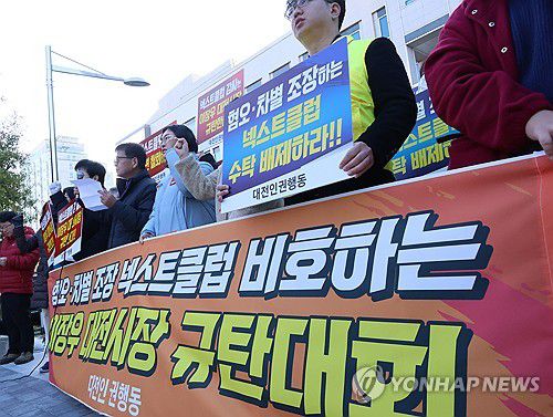 (대전=연합뉴스) 강수환 기자 = 1일 오전 대전인권행동 등 전국 133개 시민사회단체가 대전시청 앞에서 기자회견을 열고 "대전시는 극단적 종교 편향 교육과 혐오 발언으로 사회적 물의를 일으킨 넥스트클럽사회적협동조합을 대전시청소년성문화센터 위·수탁 공모 대상에서 즉각 배제해야 한다"고 촉구하고 있다. 2025.12.1
