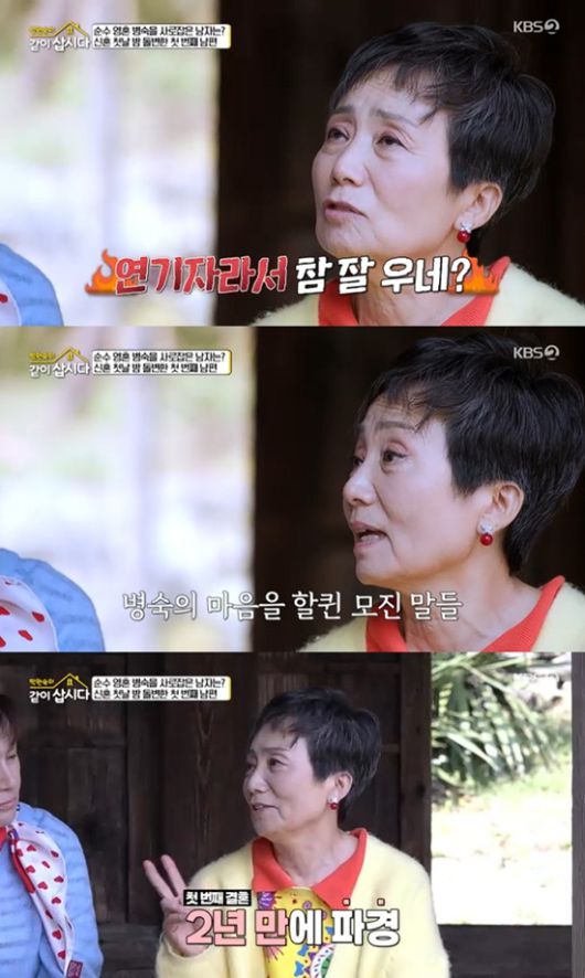 성병숙은 "그렇게 우니까 고모가 '연기자라서 참 잘 우네' 했다. 나는 그게 아직도 마음에 남아 있다"며 "그렇게 결혼한 지 2년 만에 이혼했다"고 고백했다.