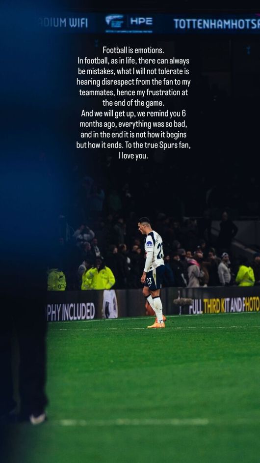 이어 포로는 "우리는 다시 일어설 것이다. 6개월 전 모든 것이 너무 나빴다는 것을 상기시켜 드리겠다. 결국 중요한 건 시작이 아니라 끝이다. 진정한 토트넘 팬들에게, 사랑을 전한다"라고 덧붙였다.