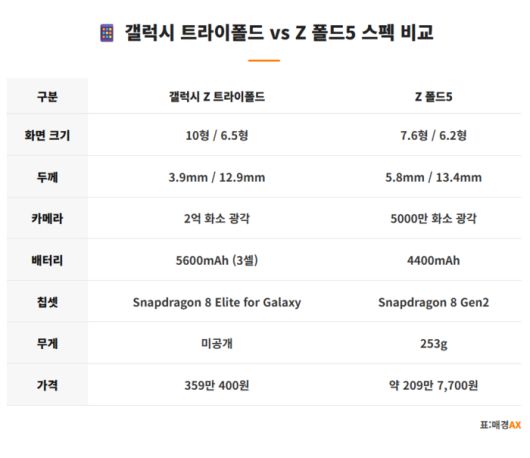 임성택 삼성전자 한국총괄 부사장은 “갤럭시 Z 트라이폴드는 삼성전자의 장인정신이 집약된 스페셜 에디션으로 단순한 폴더블 신제품을 넘어 시장의 패러다임을 바꿀 혁신적인 작품”이라며 “이번 제품이 폴더블 폰 시장이 지금보다 훨씬 더 폭발적으로 성장하는 데 중요한 촉매제, 즉 트리거 역할을 할 것”이라고 내다봤다.